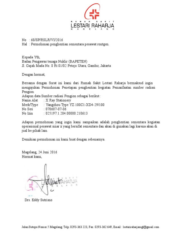 68 Surat Permohonan Pengentian Sementara Pesawat Rontgen via www.scribd.com